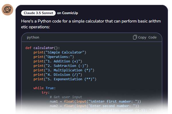 “Chatting with various AI models is amazing! – The ability to use different AI models like Claude and Google Gemini on one platform is revolutionary. Great job, Cosmicup!”