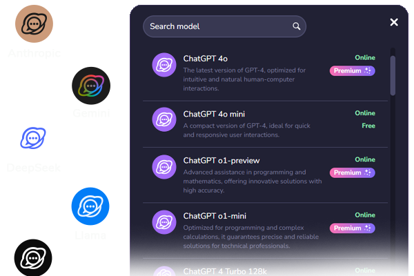 Change the game with seamless interactions! Switch between AI models while retaining the context of your conversations for an uninterrupted and unparalleled chat experience.